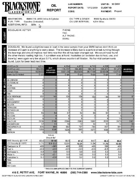 Last time I decided to skip the oil analysis so I took another sample this time around. As you can see, the report indicated slightly higher lead, which is found in bearings. That sounds bad, but I agree with the analysis. 3 PPM is in the noise, so to speak, and I consider this an uneventful report. However, as is normal practice with any oil analysis program, I do plan to follow up with another sample at the next oil service to put the issue to bed.