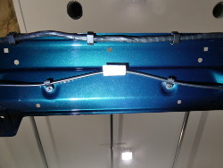 Last night after reviewing pictures I took during disassembly I realized that I installed the hood release receptacle tie cable clips in the wrong holes in the front support. So the first thing I had to do was punch out those pins and relocate the clips. Easy enough.