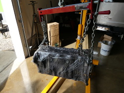In deference to my brother, who recently complained about the various smells in his garage left behind by a cocktail of paint, mineral spirits, brake cleaner and degreasing agents I left the block outside for 15 minutes to offgas as much as possible before pulling it inside and setting off for home.