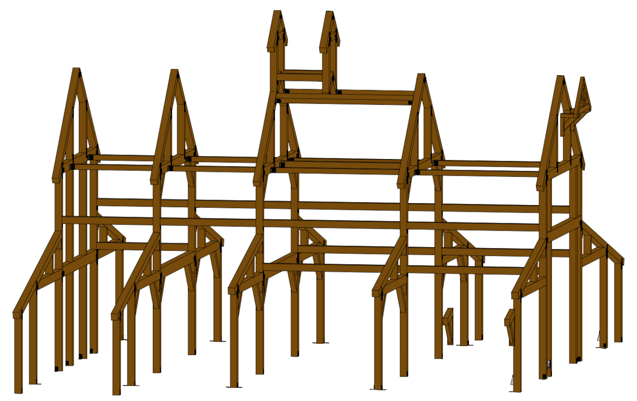 First, he added additional horizontal tie beams between all bents to allow the structure to meet shear requirements. This wasn't a surprise, however, as my Legacy project manager told me this was a likely outcome ahead of time. This structure is almost 30 feet tall including the cupola and tall structures are vulnerable to wind, especially on mountains where a venturi effect can cause average wind speeds to increase significantly. Needless to say I'm glad I'm working with people who recognize that.