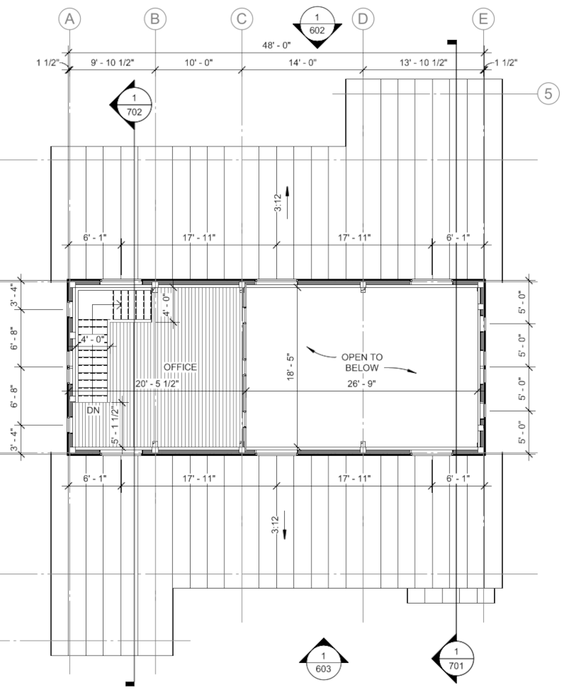 I decided to have Legacy reserve additional residential space in the rear of the center bay to satisfy the 50% rule required by the underwriters. This seemed like the most logical place to add it as the high ceiling was already part of the design, and as I learned some time ago it's cheaper to add space by building upward (or downward into a basement) than increasing the size of the building footprint.